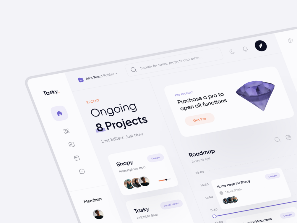 Tasky Dashoboard in White and Black Theme